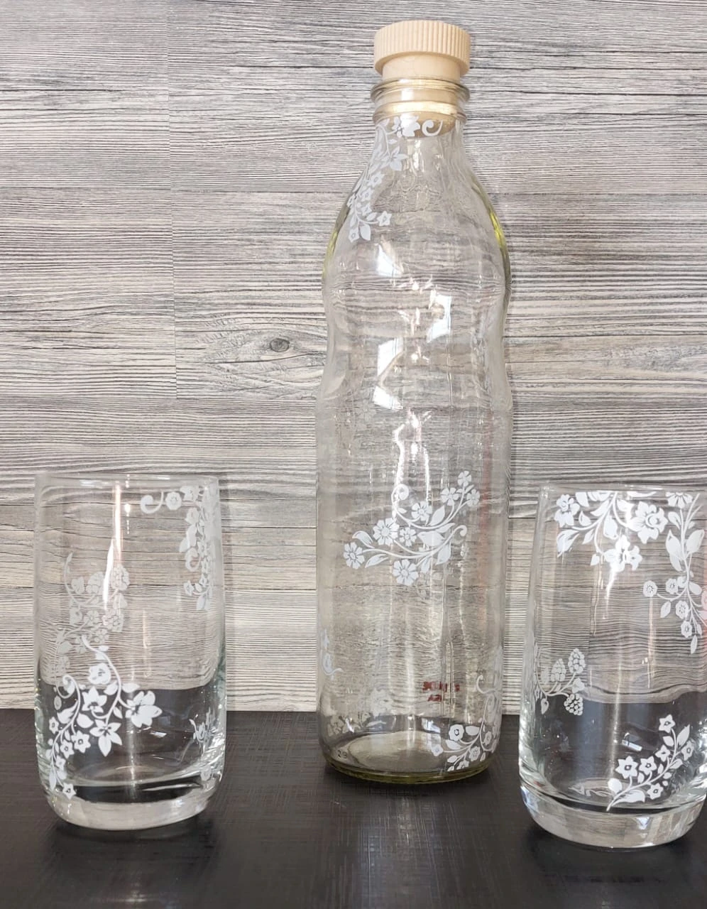Botella de vidrio con tapón hermético. Cap. 1lt. Podés combinarla con los vasos.