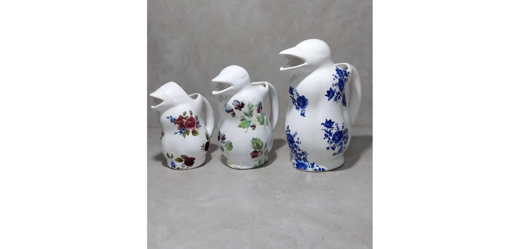 Jarra pinguino de ceramica. Cap. 1 lt, 500ml y 250ml.